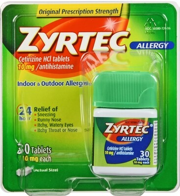 Viên uống chống dị ứng Zyrtec 10mg Tablets 30ct